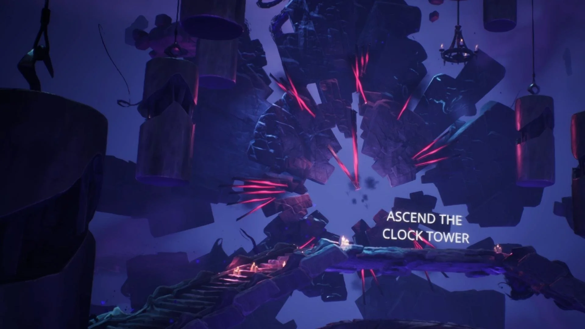 In any interactive experience, players need to instantly understand what they have to do, so we deployed short, in-world text at the start of each section to make any objectives extremely clear: “Grind the lightning!” “Ascend the clock tower!” “Get to the show!”. These simple instructions were tricky to get right because the less words you have, the more each of them matters. When possible, we made sure these objectives had a visual component in the level to make sure players knew exactly where to go.