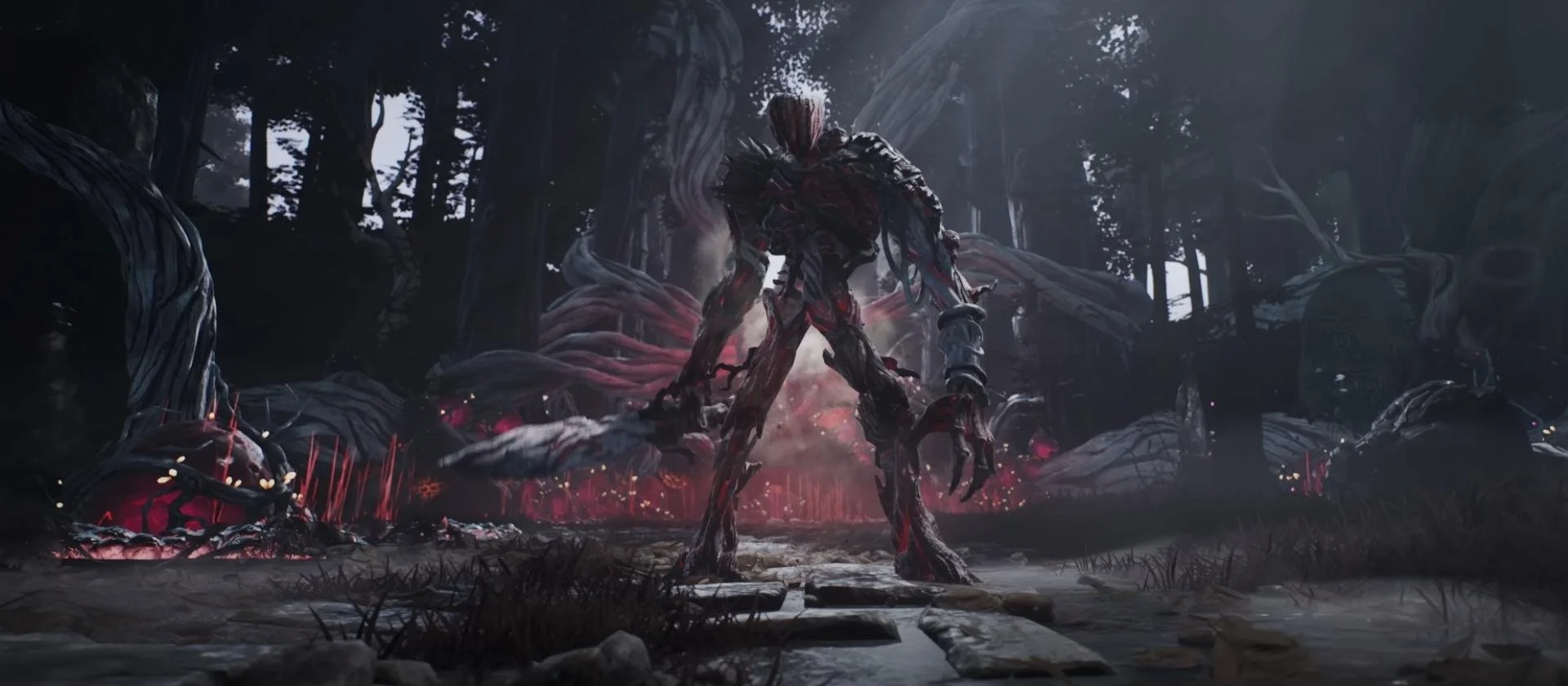 Lines are another key composition tool, especially those that point at your subject. We can see in this example from Kena: Bridge of Spirits that there are many lines in this environment. The branches pointing at the center are all functioning as arrows pointing at our figure. It’s making him look bigger and more menacing.