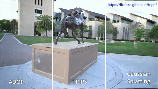 Trilinear Point Splatting (TRIPS) and its advantages over Gaussian Splatting and ADOP